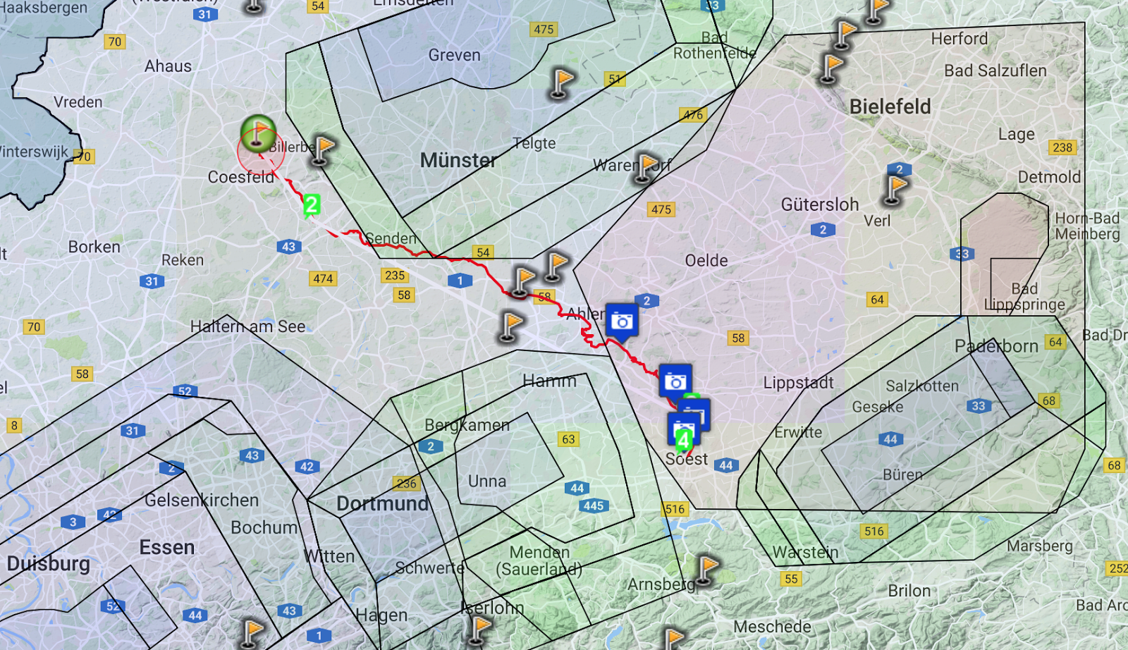 In-between the first 10 xc-km I get in touch with the flight level restrictions of the airport of FMO (airport Münster-Osnabrück). At this border I have to left the thermals about 4 times underneath 3.500 ft, not rarely I had to pull big ears to stay underneath this level.